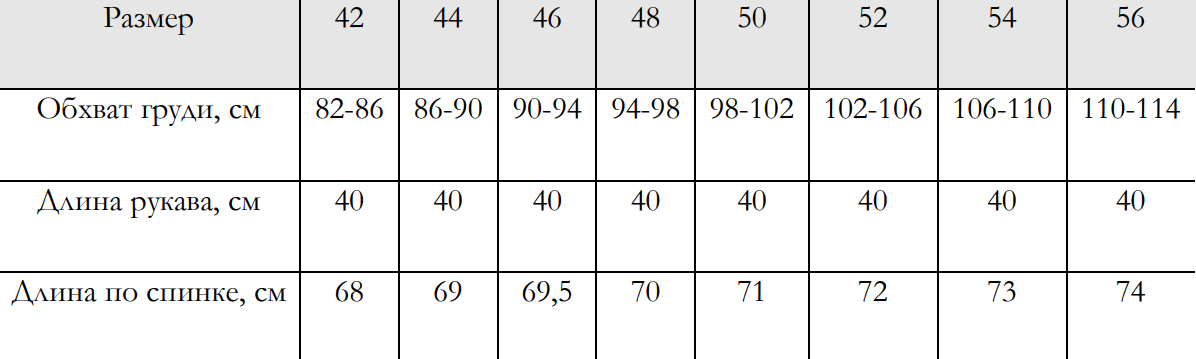 Таблица размеров